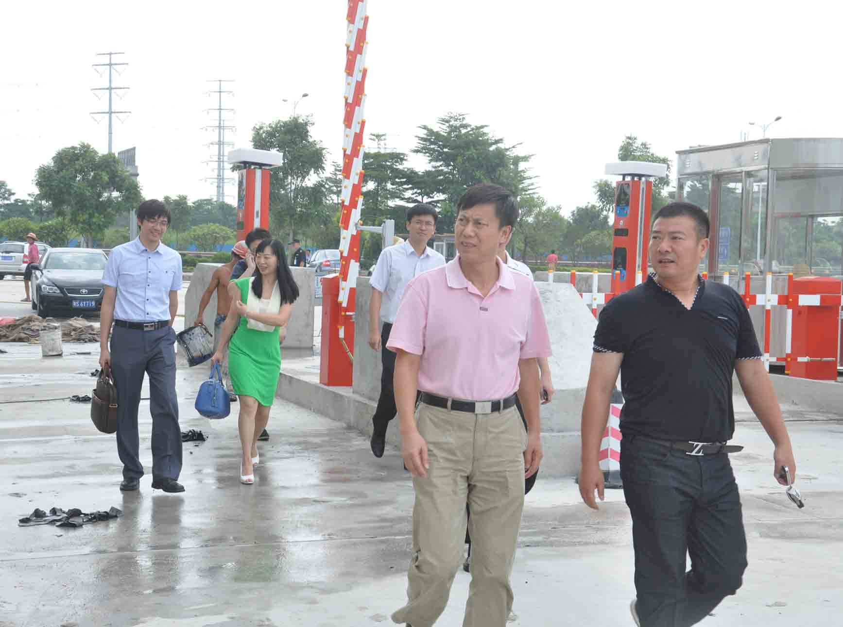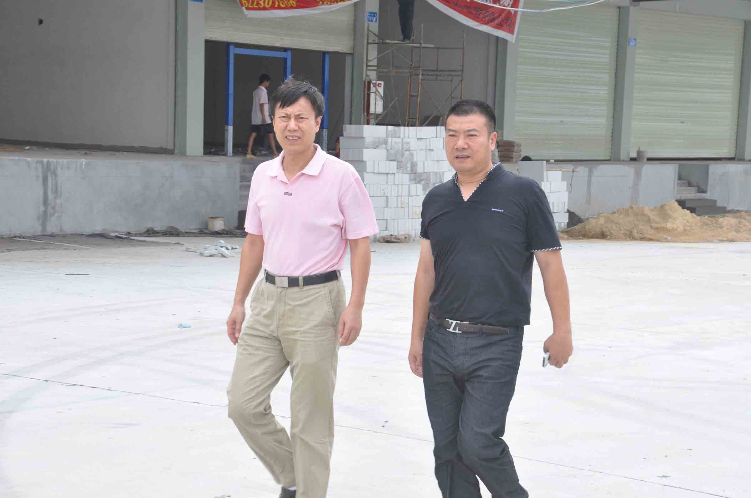 經(jīng)濟(jì)和信息化局副局長(zhǎng)候小平(前排左一)與百茂物流城董事長(zhǎng)李新成(前排左二)參觀現(xiàn)場(chǎng)