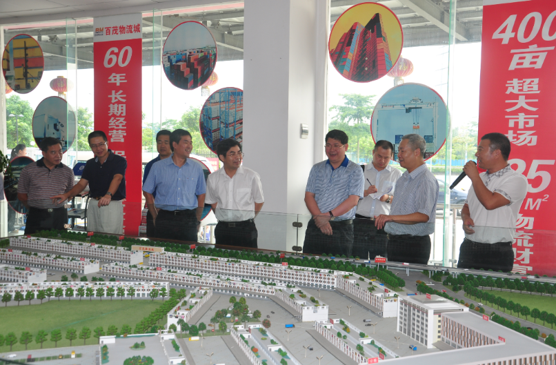 2013年7月16日東莞市常務副市長梁國英一行蒞臨百茂物流城參觀指導,陪同參觀的還有東莞市政府秘書長鄧浩全、副秘書長朱默河等市政府領導以及高埗鎮(zhèn)委書記黃耀成、鎮(zhèn)長黃啟光等高埗鎮(zhèn)政府領導。