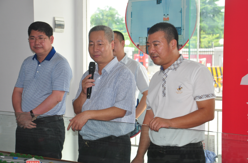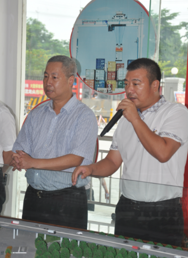 東莞市百茂實業(yè)投資有限公司董事長李新成向副市長梁國英一行詳細講解百茂物流城園區(qū)規(guī)劃和開發(fā)建設情況。