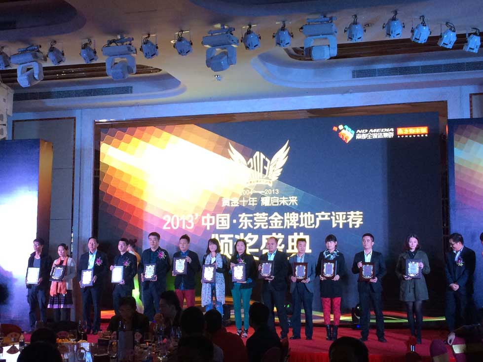 2013東莞金牌地產(chǎn)評薦頒獎典禮于11月27日晚舉行,百茂優(yōu)秀管理團(tuán)隊參加了當(dāng)晚的頒獎典禮。