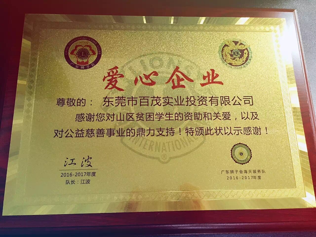 百茂資助獅子會(huì)廣西貧困山區(qū)學(xué)生,頒發(fā)的愛心企業(yè)獎(jiǎng)牌已領(lǐng)到。百茂將秉承“創(chuàng)新,發(fā)展,和諧,拼搏”的企業(yè)理念,繼續(xù)支持慈善事業(yè),幫助更多需要幫助的人。