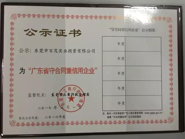 近日,傳來喜訊,百茂物流城獲得由東莞市工商行政管理局頒發(fā)的“廣東省守合同重信用企業(yè)”榮譽稱號,這是百茂物流城繼“東莞市文明誠信市場”、“東莞誠信企業(yè)”后再獲此稱號。百茂物流城獲得 “守合同重信用”企業(yè)認定,是對百茂物流城依法經(jīng)營、誠信守約、經(jīng)濟效益良好的有力證明,也是東莞市工商行政管理局對百茂物流城長期以來規(guī)范管理、誠實守約的高度肯定和認可。